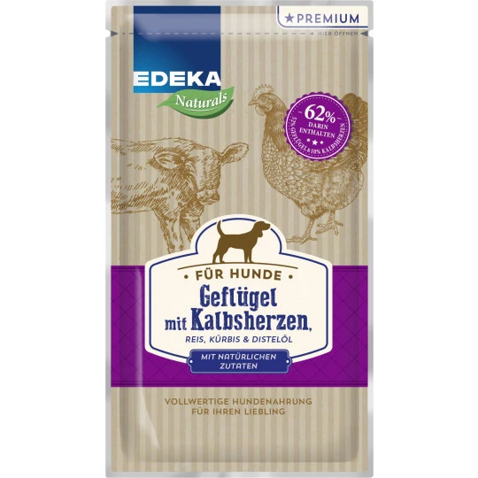 EDEKA Naturals Für Hunde Geflügel Mit Kalbsherzen 125G